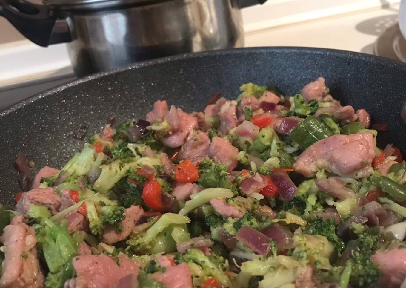 Instructions to make to make Pechuga de pavo 🦃 con verduras y salsa de soja 🍱