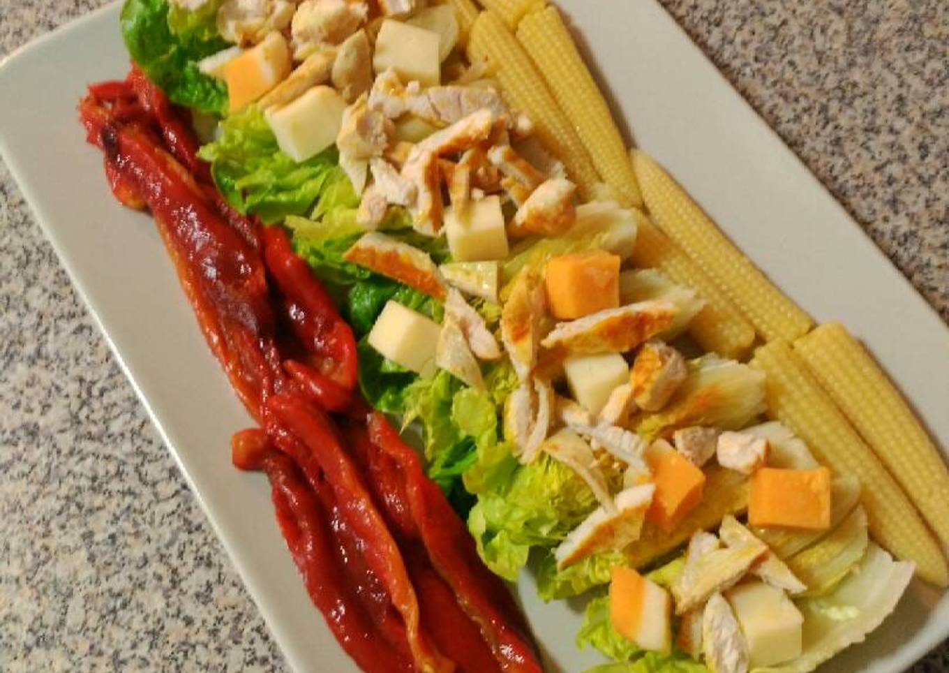 Cogollos con pollo y pimientos asados a la vinagreta de soja