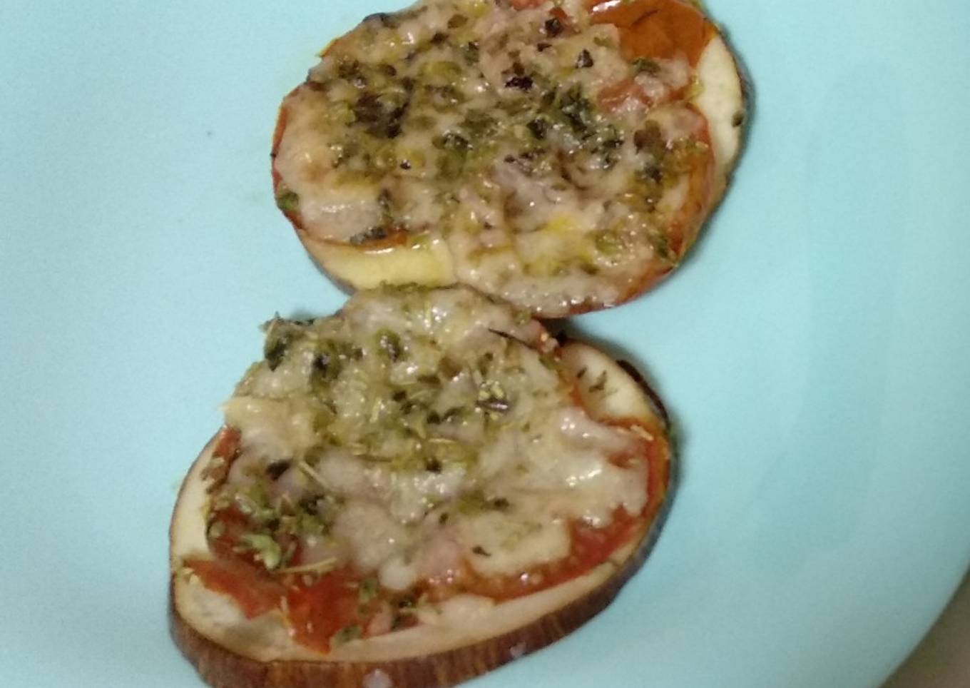 - Sobre cada berenjena colocamos una rodaja de tomate.