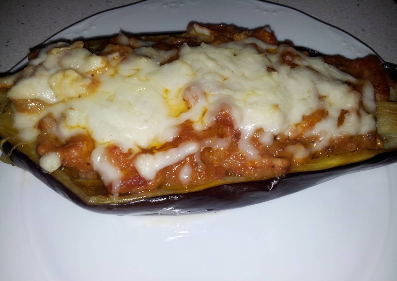 - Rellenamos las berenjenas con esta mezcla y ponemos queso por encima. Metemos unos minutos al horno para que se funda el queso y están listas para servir.