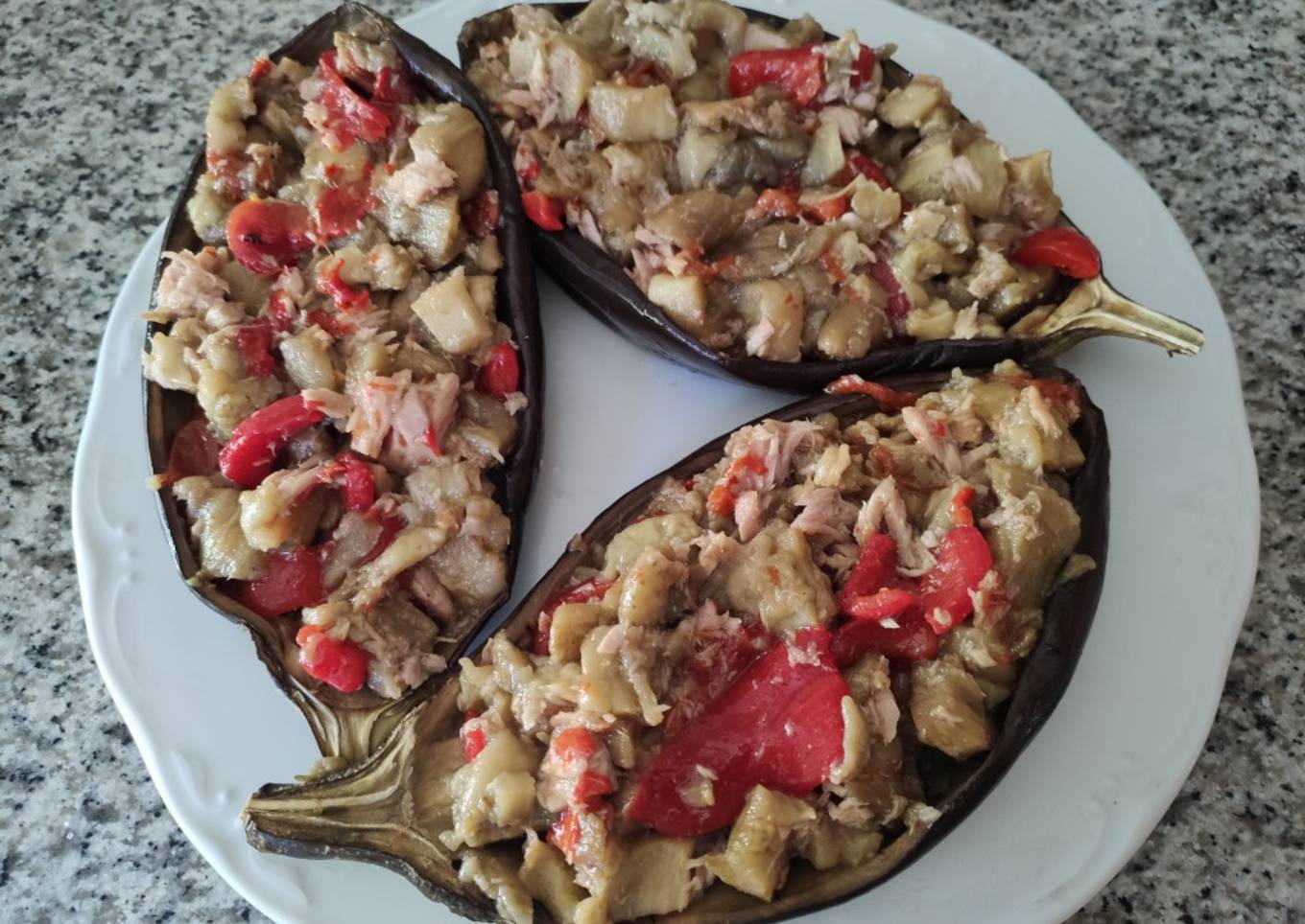 - Poner en un bol el atún, el pimiento, añadir la carne de las berenjenas, y sazonar como ensalada.