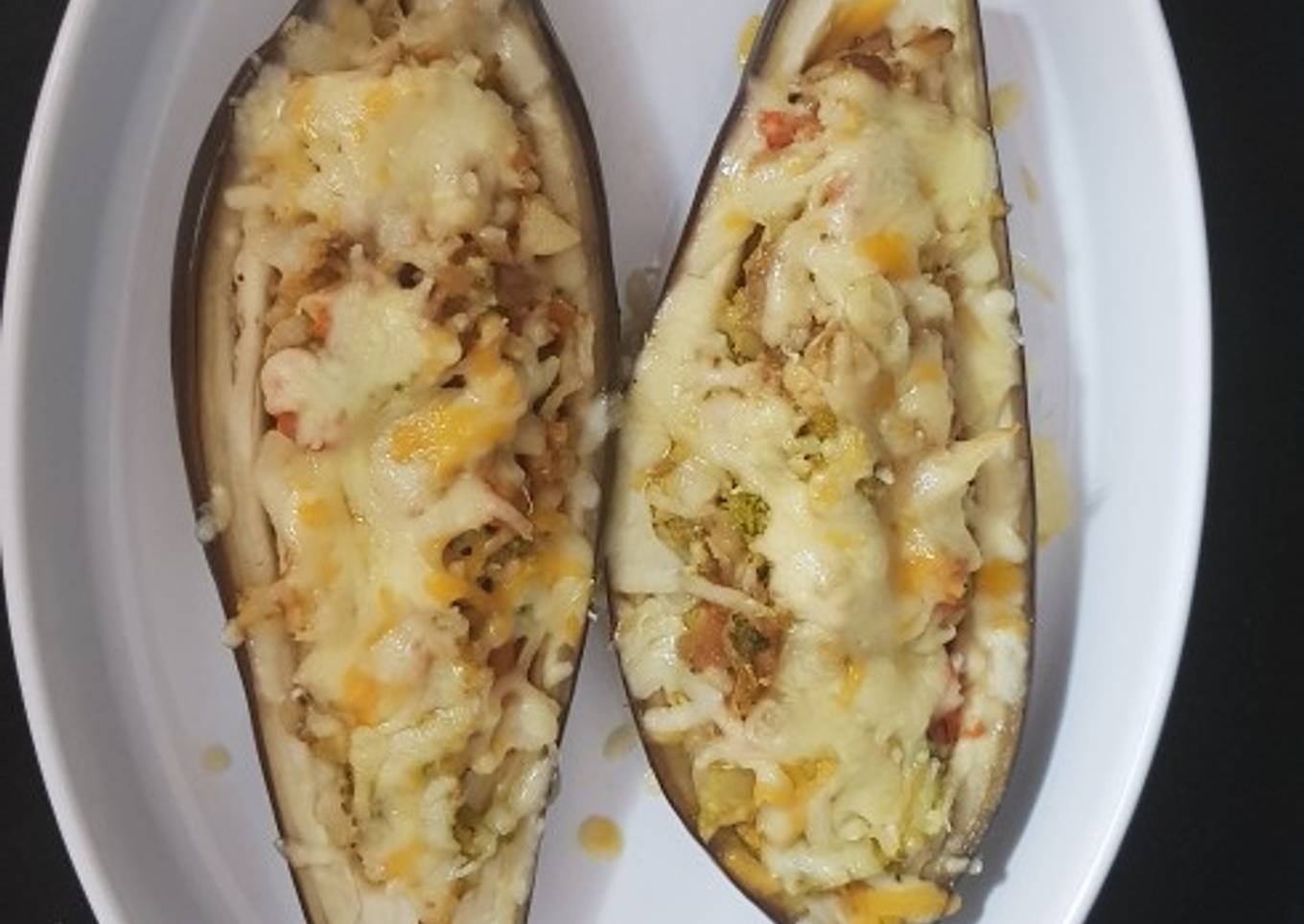 - Con las berenjenas ya cocidas rellenamos ambas mitades