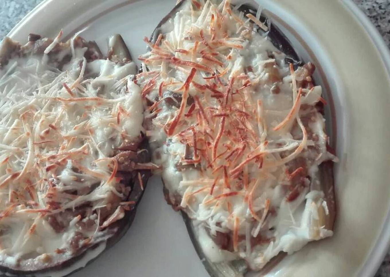 - Rellenamos la berenjena, añadimos la bechamel y el queso. Metemos al horno 5 min.